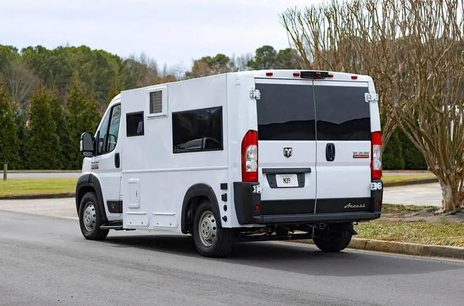 从外观效果看,拓展的一面车体更像一台标准房车,另一侧则是普通RAM面包车的基础状态,俯视图效果也能看出两侧不对称的特征,甚至新车仅提供了左侧延伸后视镜就可以观察后方。