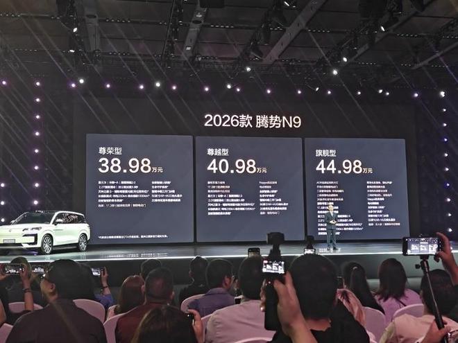 9月17日,定位超级混动豪华新座驾的2026款腾势N9正式上市,国民女神高圆圆作为品牌代言人亮相发布会,她望着这款 “同款座驾” 感慨:“腾势,让人在人生不同角色中都能‘腾势而上’,希望大家忠于内心,走在自己的人生红毯上。” 这番话恰与新车 “出色更出众”的定位契合,此次新车推出尊荣型、尊越型、旗舰型三款车型,官方指导价38.98万-44.98万元,以硬核科技与豪华质感冲击高端新能源SUV市场。